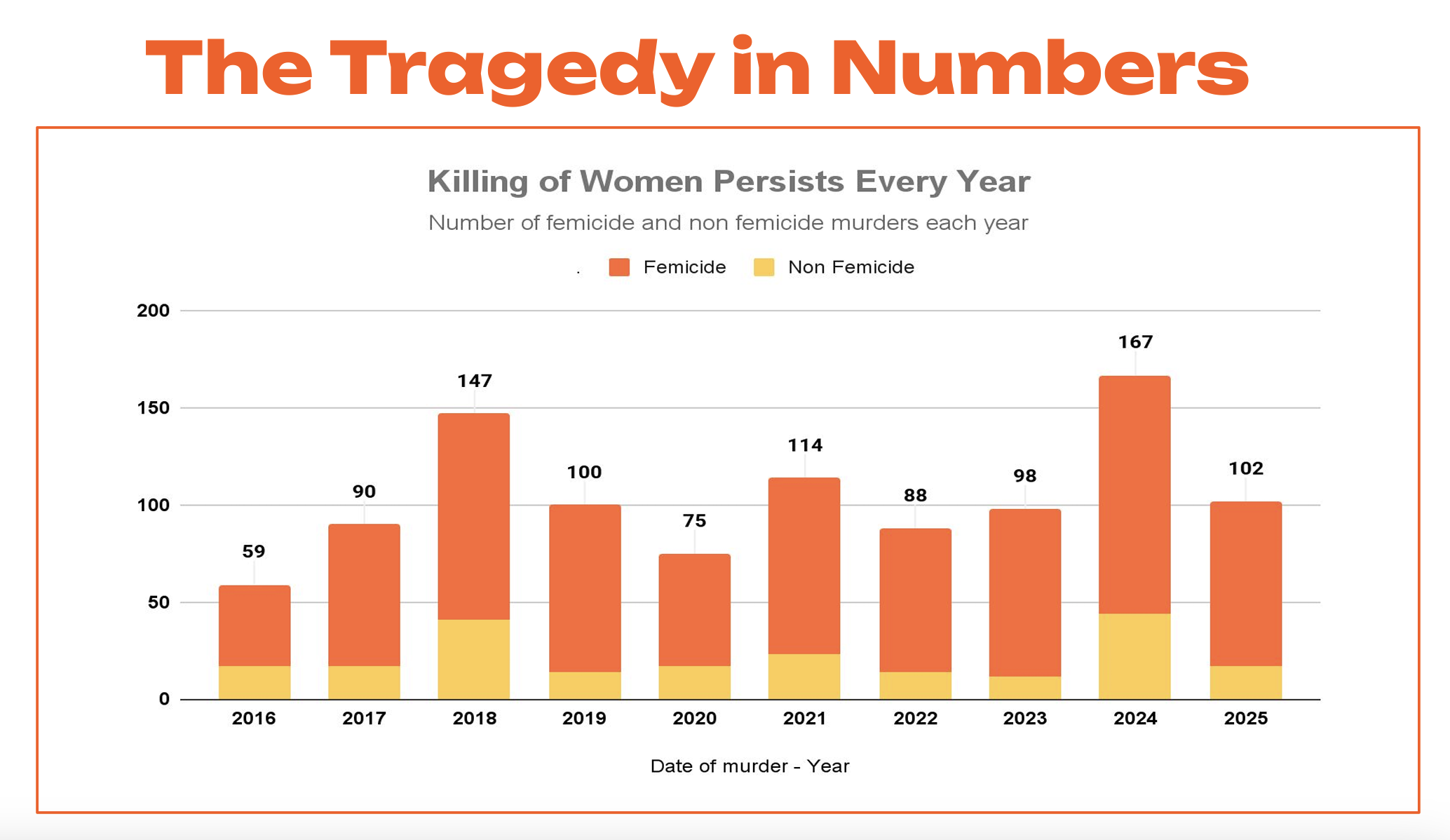 We are also seeing a sharp and troubling escalation in violence within dating circles. Killings by boyfriends have risen steadily, peaking at 32% in 2025.